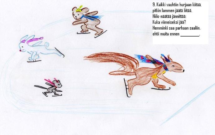 kiitää, Niilo-näätää jännittää: Kuka viimeiseksi jää? Hemminki saa parhaan saaliin, ehtii muita ennen __________. |