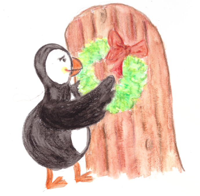 “Whistle while you work”, thinks Pete with a little smirk. He plows the snow with a dance, “Life is fun, when given a chance!” On the door he hangs a Christmas wreaths, and lots of lights with colorful leds. |