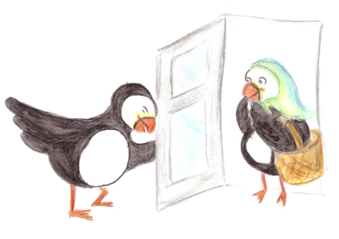 They sit by the TV in their house, Pete in his thoughts, quiet as a mouse. Interrupted by a sudden doorbell, “We came to get you”, the ladies tell. “Put on your boots and join the crowd!” “What’s going on”, asks Pete out loud. |