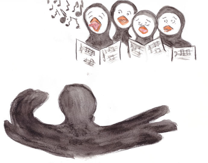 “Every bird sings its own song”. In a choir it’s a challenge, if the song is wrong. “This doesn’t work, it spoils the melody, fractures the careful harmony." The choristers wonder: “What can we do”, not wanting to dishearten him, eager and true. |