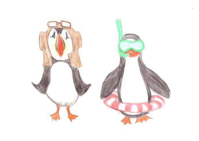 | Penguin's Antarctic and lives on south pole Where puffins in North dig their nest hole. What's the key difference between these two? I will give a hint to you: Penguins are better at sea and diving When puffins in the skies are thriving. |