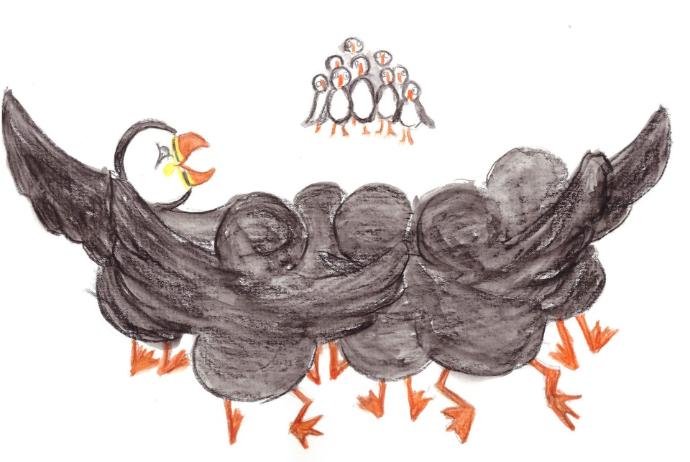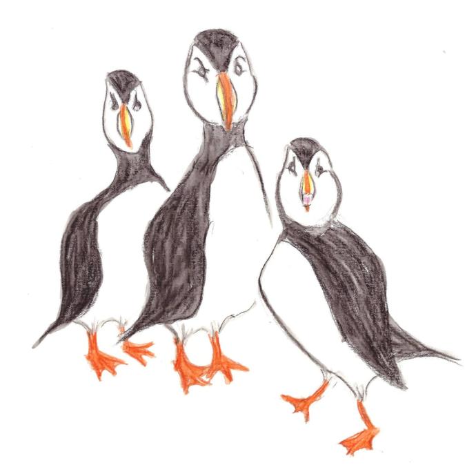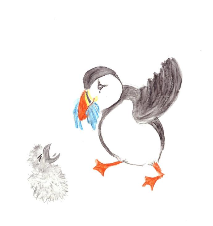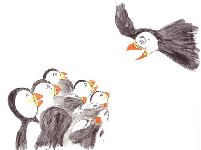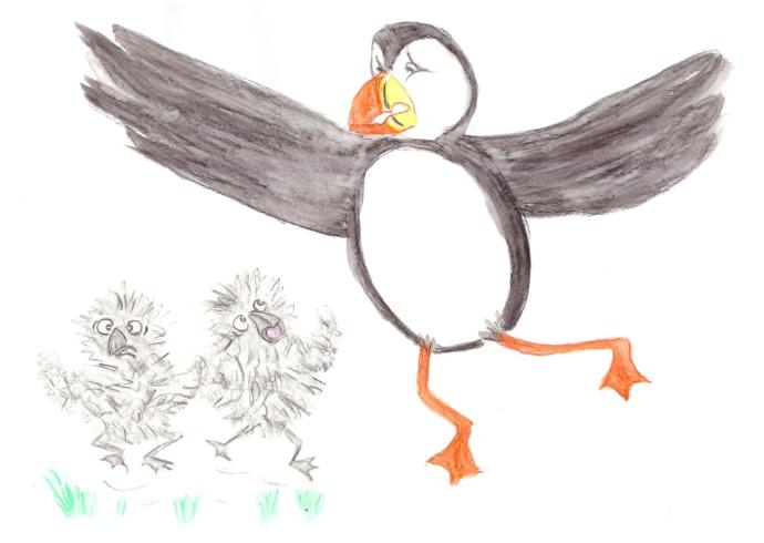 | The hedgehog stories - you've heard them all, But we need tales to long, dark fall. We'll proceed to investigate another species - fear not, 'tis a fairy tale, not a thesis. It's a story of puffins that live by the sea You hear it all if you join me. |
