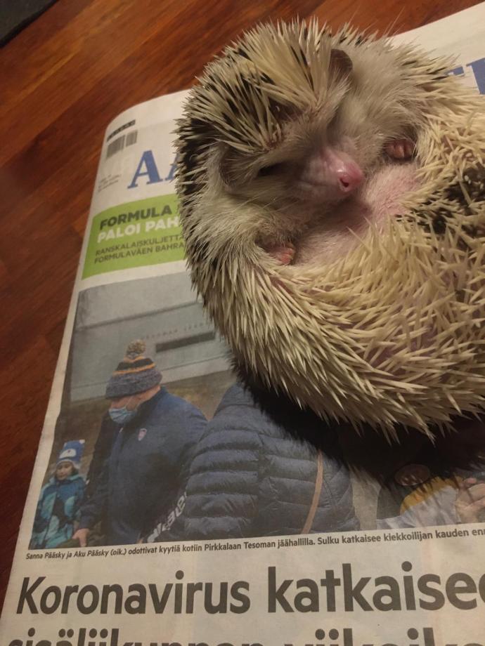 | Onko eristys uinut ihon alle? Ei siili juurikaan halua ulkosalle. Pesässä nukkuu ja kääntää selkää ei kai se noin paljon koronaa pelkää? Eikä mitkään herkut enää tahdo maistaa, siili vallan alkaa syömistä laistaa. |