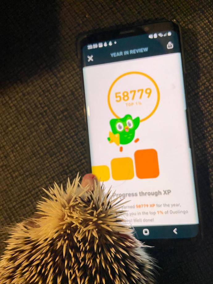 | At home she gets bored when staying still, ”I gotta do something, I don’t feel ill. The old folks amuse themselves with bingo, I engage myself in Duolingo! I learn Spanish, Polish and French, become global nomad without leaving my bench!” |