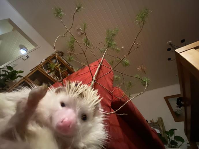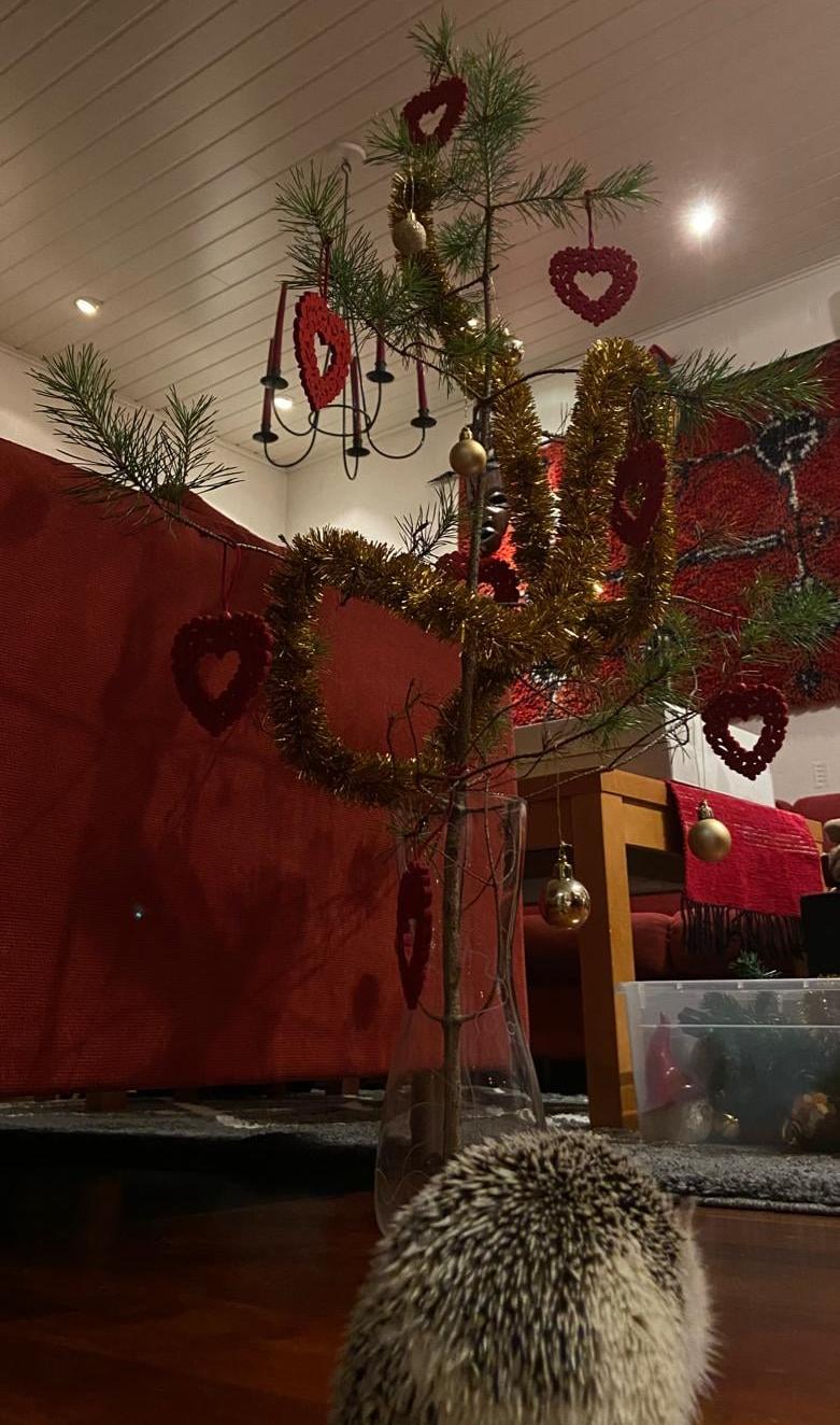 | Kuusi on laiha, vaan se ei haittaa, kun kauniit koristeet oksille laittaa. On neulaset otettu parempaan käyttöön, siilin piikkivajauksen täyttöön. Eikä lahjoja tarvitse erikseen haalia, voi vaan hyviä aatteita mielessään vaalia. |