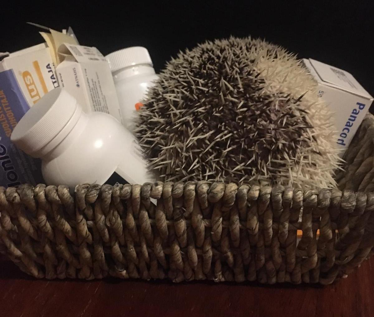 | The hospital stay is not at all bad, they talk, and laugh, and make each other glad. A broken arm or an operated tumor - you don’t feel pain with a dose of humor. Appetite is back and spirits are up Hedgehog eagerly empties every food cup! |