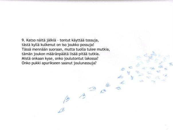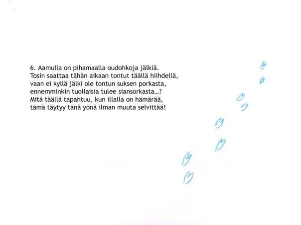 | In the morning there are footsteps around, that’s not a cat, a rabbit, or a hound… Nor it is an elf’s footprint, what could it be, we need a hint. “Listen to this, don’t go through the roof, I think that is a print of a hoof!” |