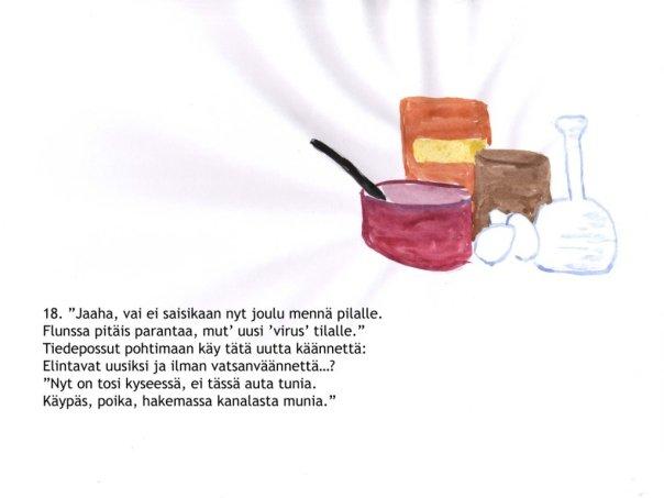 | “Good work, my friends, I’m proud of you, you’ve spread well this nasty flu. It’s all around on streets and alleys on the hills and in the valleys. Christmas can be soon called off!” he ends his speech with cheerful puff. |