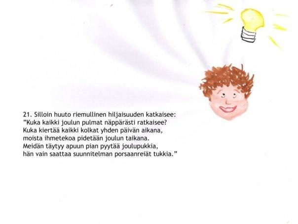 | But then they hear a happy cry: “I’ll tell you who is just the guy! In 24 hours he circles the globe he wears a beard and long red robe. We need to ask his help, of course, the solver here is Santa Claus!” |